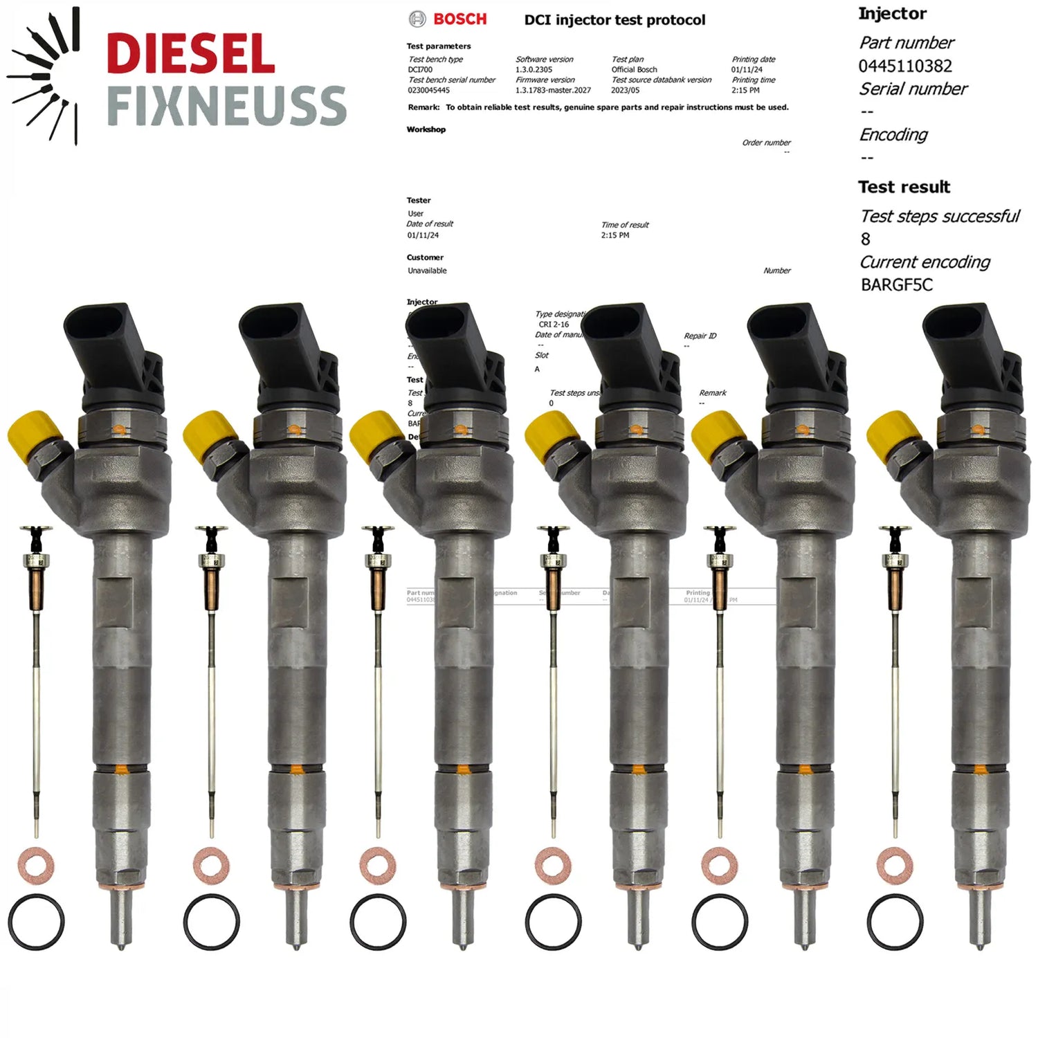 6x AT-Injektor inkl. Kupferdichtring + O-Ring + BOSCH Prüfbericht geliefert.