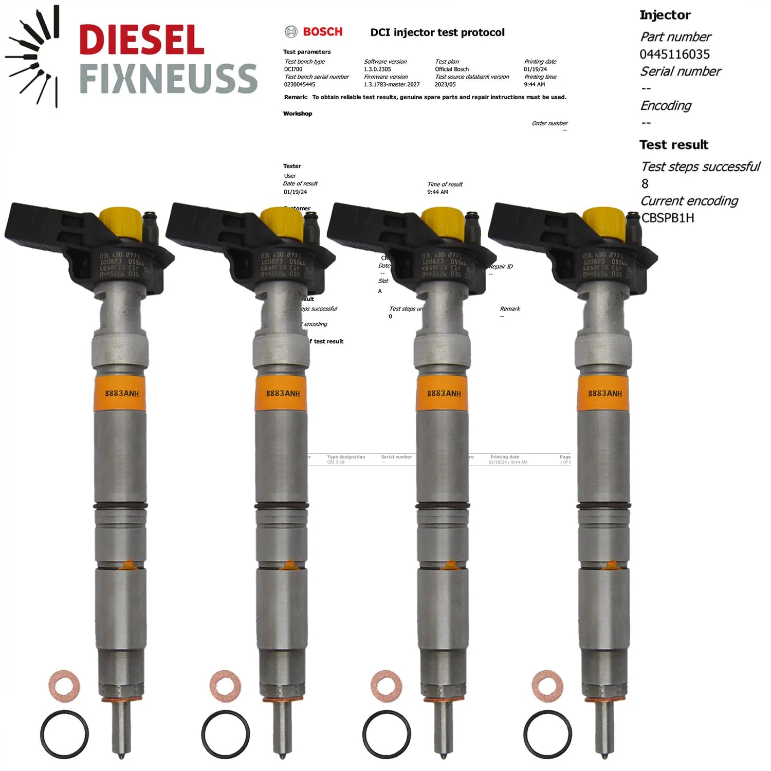 4 x AT inyector incl. anillo de sellado de cobre + junta tórica + informe de prueba BOSCH suministrado.