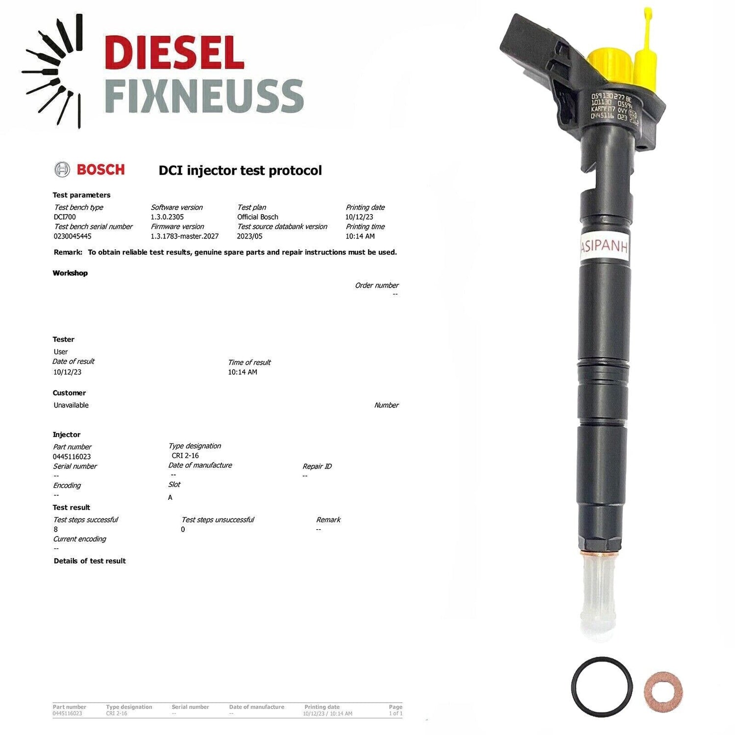 6 x injecteur AT livré avec bague d'étanchéité en cuivre + joint torique + rapport de contrôle BOSCH